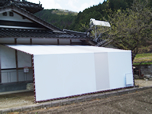 テント(各サイズ)/テント用ウエイト/砂袋/テント用杭、ロープ/イベント用ステージ/カーペット/紅白幕/あさぎ幕/防風幕/テーブル/テーブル用クロス/祭壇、三宝、水器、徳利、皿、半紙/吉兆幕、真榊/椅子、背カバー、座布団/式次第、式次第用台/手水用具(柄杓、桶、水受)、手拭き/手水用机、カバー/鋤、鍬、鎌/手袋/榊、竹/しめ縄/玉串/盛砂/敷砂/かわらけ/白木盆/黒盆/お供え物(例)鯛、米、塩、乾物、野菜、果物、清酒、奉献酒など)/放送設備:卓上マイク、スタンドマイク/灰皿(スタンド、卓上)/立て看板(式典会場案内)/看板(控室、受付、トイレ、直会、式場)/台座ポール/席札/傘、傘立て/腕章/ストーブ、扇風機/仮設トイレ/テープカット/演台・花台/生花 など